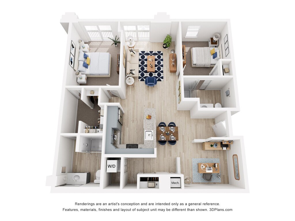 1 Dormitorio, 1 Baño, 750 pies²Disponible AhoraGalería del Modelo