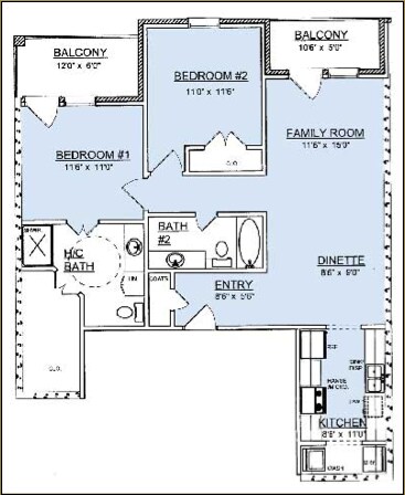 Modelo de apartamento: A11 Dormitorio, 1 Baño, 840 sq ftNo Disponible![]()