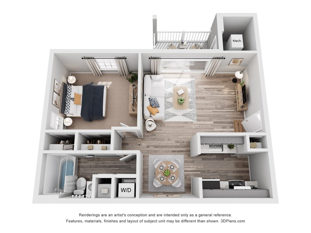 1 Dormitorio, 1 Baño, 687 pies²Disponible AhoraGalería del Modelo