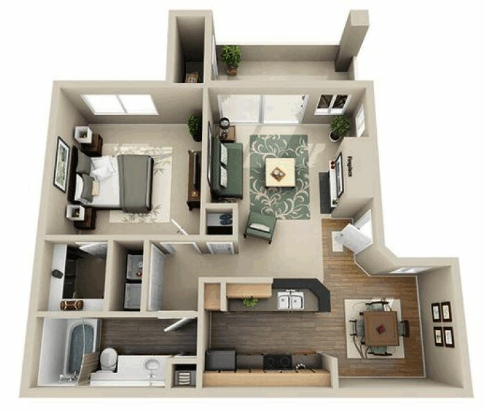 1 Dormitorio, 1 Baño, 750 pies²Disponible AhoraGalería del Modelo