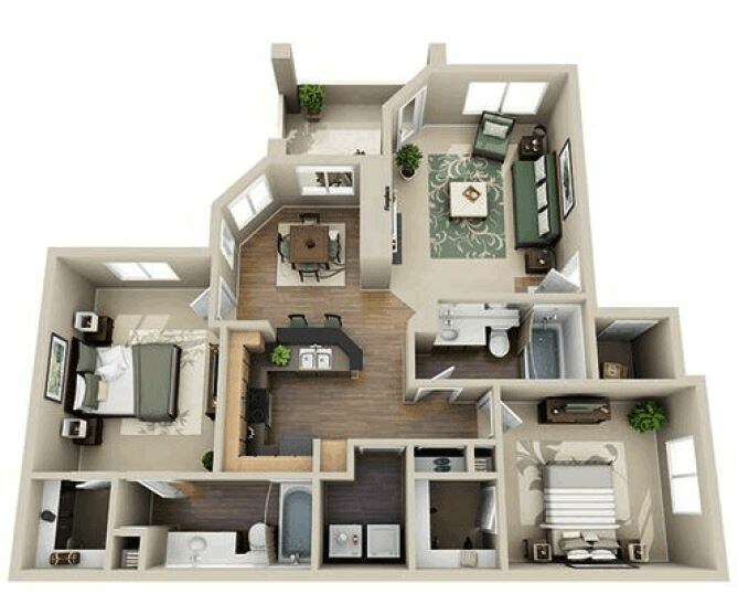 3 Dormitorios, 2 Baños, 1300 pies²Disponible Nov 23Galería del Modelo