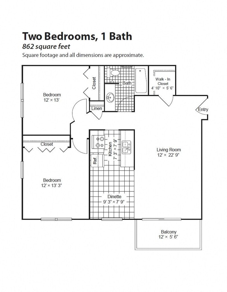 Renovated 2 Bedroom 1 Bath - Imagen 5 Los planos son representaciones artísticas. Todas las dimensiones son aproximadas. El producto y las especificaciones reales pueden variar en tamaño o detalle. No todas las características están disponibles en cada vivienda en alquiler. Por favor, consulta con un representante para obtener más detalles