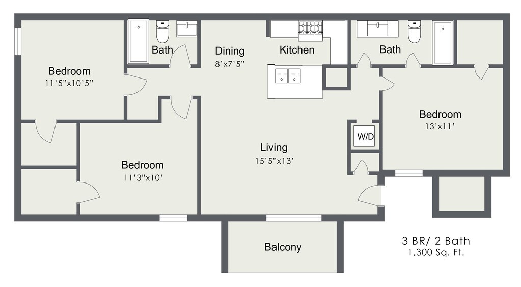 3 Dormitorios, 2 Baños, 1300 pies²Disponible Oct 23Galería del Modelo