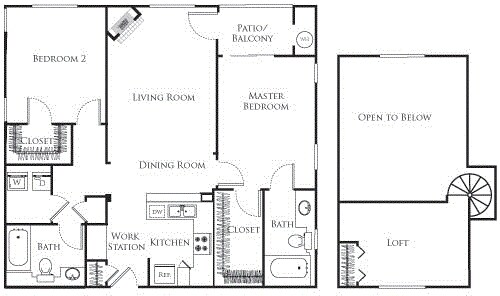 Modelo de apartamento: Provence with LoftLlame para Precios1 Dormitorio, 1 Baño, 1008 sq ftNo DisponibleProvence with Loft - Plano 1 2 Dormitorios