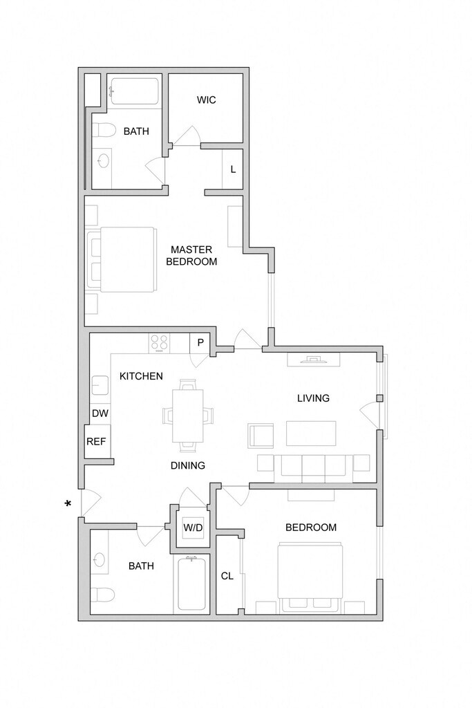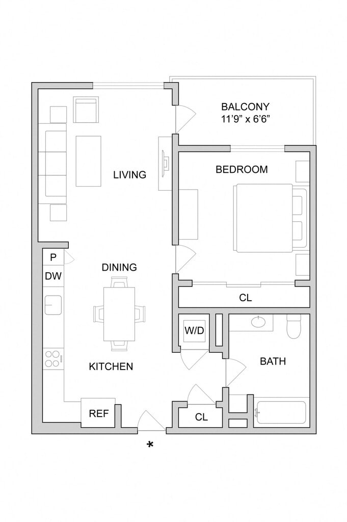 A1 - Plano 2 Unidad de apartamento: 254Modelo de apartamento: A1$2,5041 Dormitorio, 1 Baño, 703 sq ftDisponible Ahora![]()