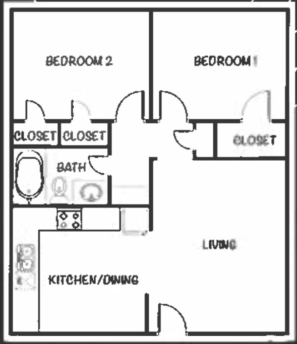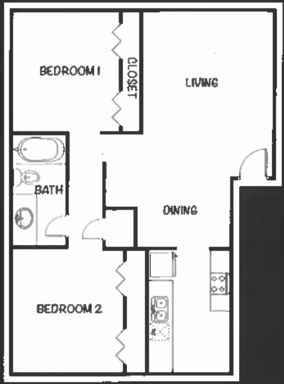 2 bedroom 1 bath - Plano 1 2 bedroom 1 bath