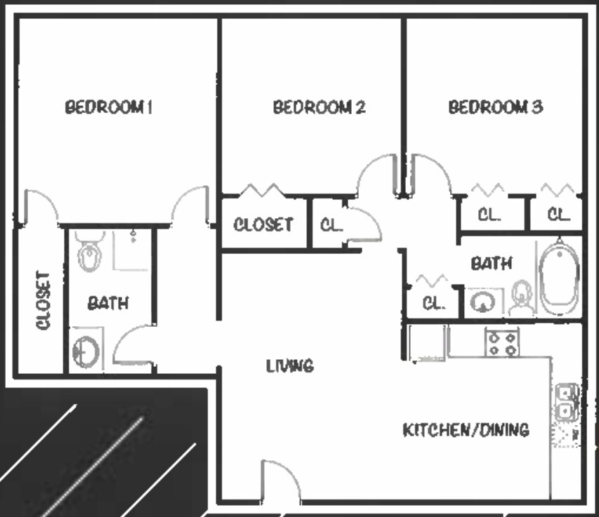 Modelo de apartamento: 3 bedroom 2 bath3 Dormitorios, 2 Baños, 1000 sq ftNo Disponible![]()