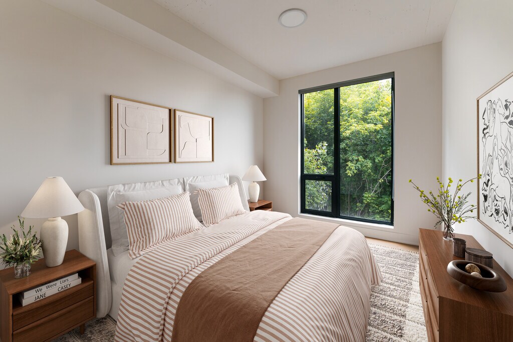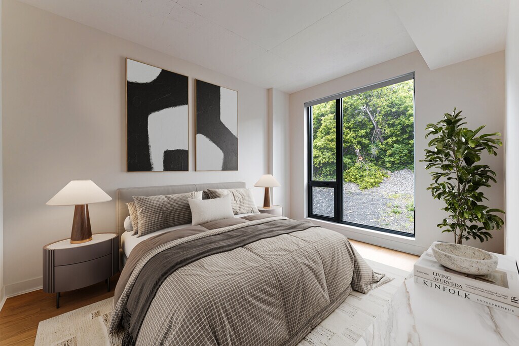 Welcome to Bellevue, where modern design meets sophisticated comfort in the heart of Montreal's vibrant Notre-Dame-de-Grâce (NDG) neighborhood. Our bright and spacious rental residences offer an exclusive living experience with easy access to downtown Montreal, Monkland Village, and a trendy selection of shops and services. This building is also pet-friendly. Suite Features: Modern Interiors: Our suites feature a design-forward balance between classic and contemporary styles, with upscale finishes and inviting spaces. High Ceilings: Enjoy a spacious atmosphere with 9-foot ceilings. Climate Control: Each unit includes central heating and air conditioning for year-round comfort. Soundproofing: Triple-pane acoustic windows and soundproofing insulation ensure a peaceful living environment. Premium Kitchens and Bathrooms: Quartz countertops and backsplashes, along with top-of-the-line stainless steel appliances, provide a luxurious touch. In-Unit Laundry: Full-size front-loading washer and dryer included in every suite. High-Speed Internet Ready: The building is wired with fiber optic for high-speed internet from Bell and Videotron. Garden Apartments: Select units offer pristine courtyard views, oversized balconies with glass railings, and large terraces. Street-facing apartments provide unobstructed views to the south, east, and west. Two & Three Bedroom Units: These units include walk-in closets, two full bathrooms, and a double vanity in the master bathroom. Pet Friendly: We are a pet friendly building and welcome your furry friends. Building Amenities: Rooftop Terrace: Relax and enjoy panoramic views of the city. Indoor Parking: Convenient and secure parking options, including electric car charging stations. Private Gym: Exclusive fitness facilities for residents. Security: Equipped with WatchNET® Security System, security cameras throughout the building, and secure door access controls on all common areas. Storage Lockers: Additional storage options available for residents. NOW LEASING