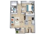 Modelo de apartamento: 1x1 A2BLlame para Precios1 Dormitorio, 1 Baño, 606 sq ftNo Disponible1x1 A2B - Plano 1 1x1 A2R