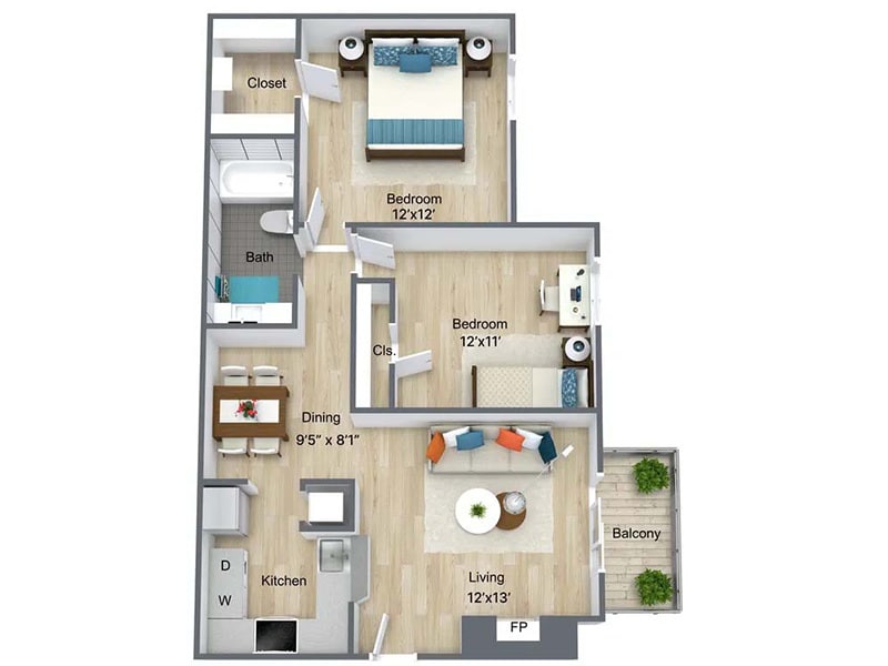 Modelo de apartamento: 2x1-ADesde $1,2292 Dormitorios, 1 Baño, 851 sq ftDisponible Ahora![]()