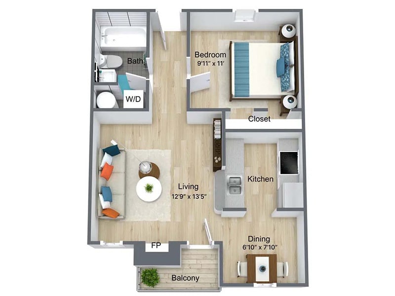 1 Dormitorio, 1 Baño, 630 pies²Disponible AhoraGalería del Modelo