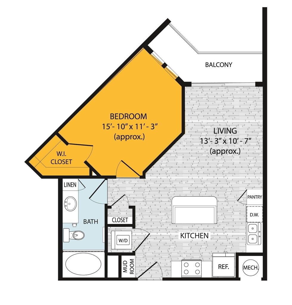 Modelo de apartamento: A1B.1Desde $1,3601 Dormitorio, 1 Baño, 613 sq ftDisponible AhoraLos planos de la planta son una interpretación artística. Todas las dimensiones son aproximadas. Los tamaños o el detalle del producto real y sus especificaciones pueden variar. No todas las características están disponibles en todos los hogares para rentar. Los precios y la disponibilidad están sujetos a cambios. El alquiler que se muestra es mensual. Se pueden aplicar ciertos cargos, por ejemplo, entrega de paquetes, recolección de basura, agua, servicios, etc. Depositos varian. Consulta a un representante para conocer detalles.