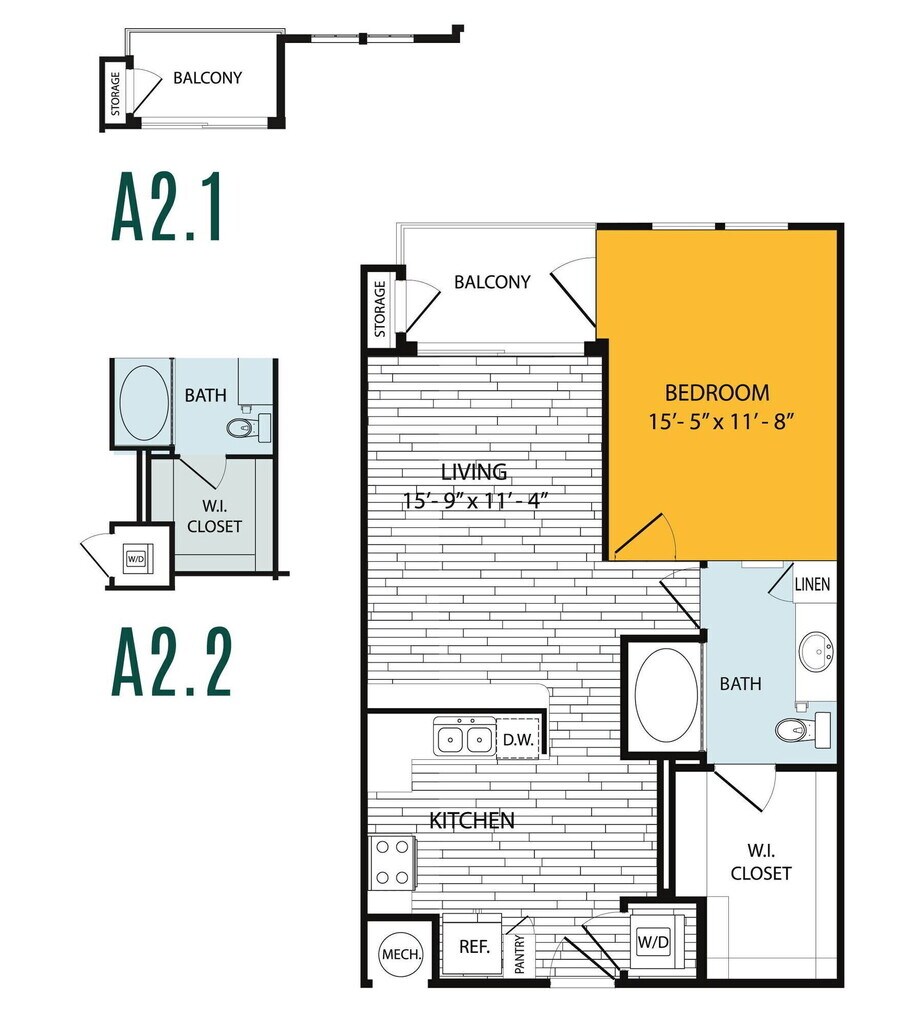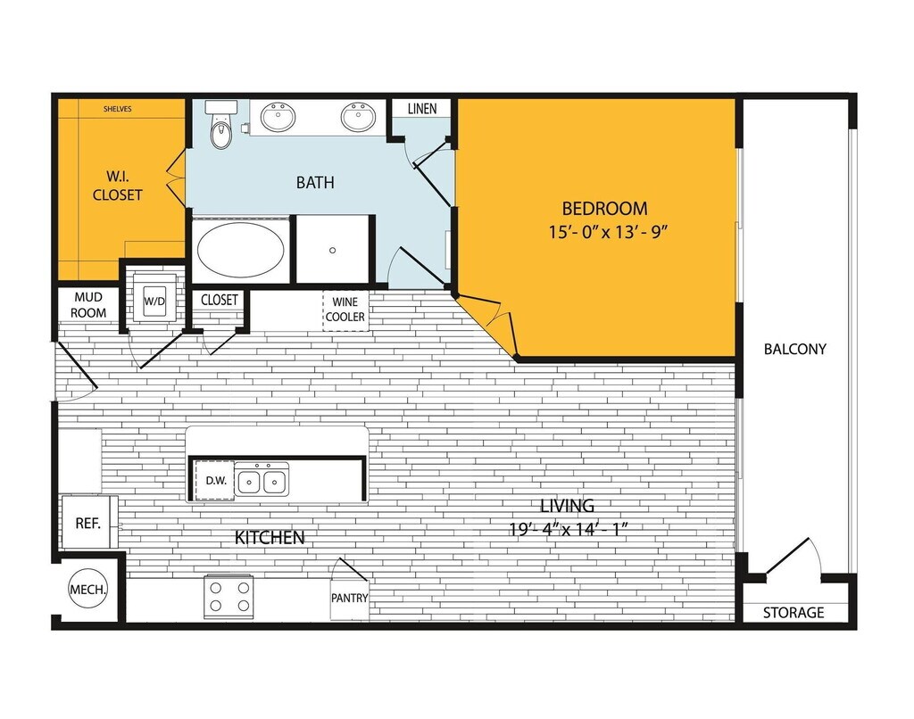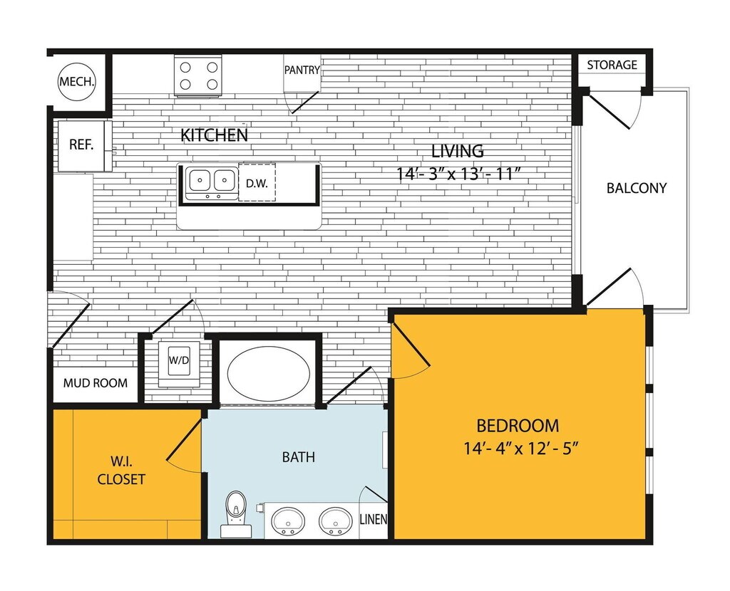 1 Dormitorio, 1 Baño, 761 pies²Disponible AhoraGalería del Modelo