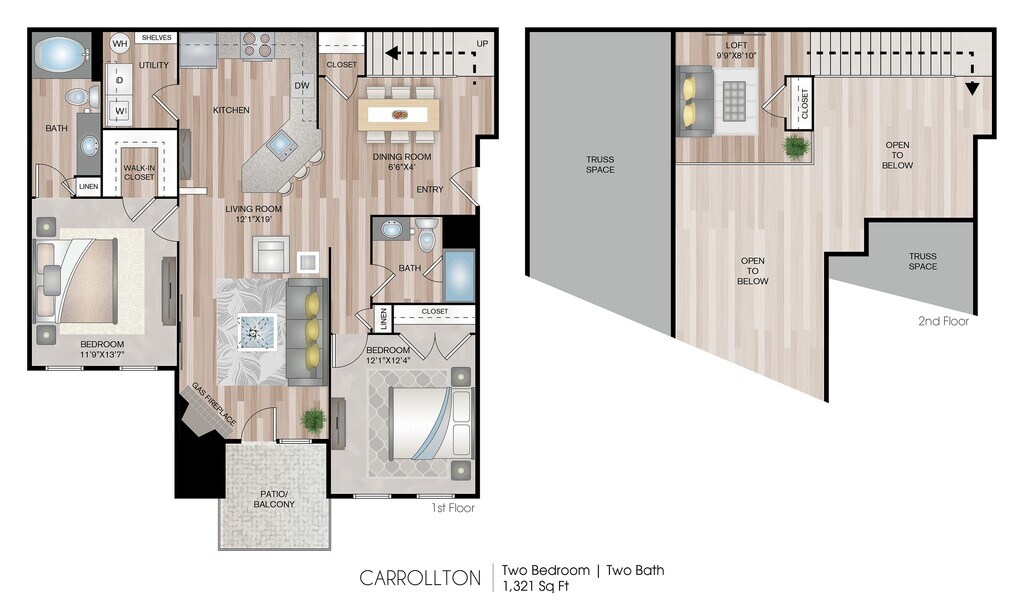 Modelo de apartamento: Carrollton with LoftDesde $2,5982 Dormitorios, 2 Baños, 1321 sq ftDisponible June 7, 2026![]()
