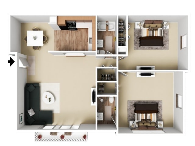 Modelo de apartamento: 2BRU$1,8102 Dormitorios, 1 Baño, 900 sq ftNo Disponible![]()