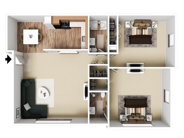 Modelo de apartamento: 2BR$1,7502 Dormitorios, 1 Baño, 880 sq ftNo Disponible![]()