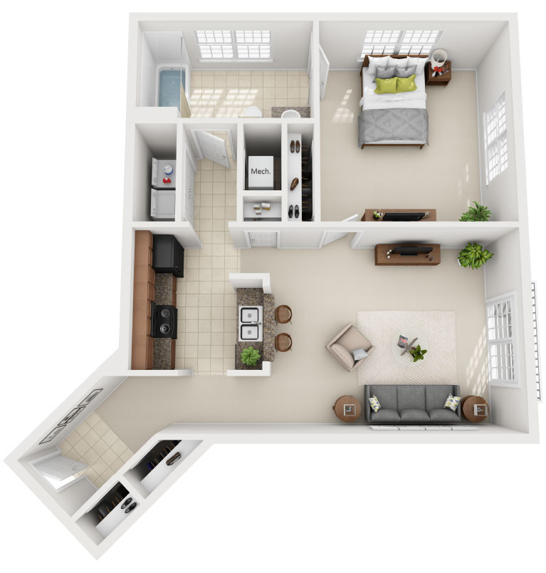 1 Dormitorio, 1 Baño, 827 pies²Galería del Modelo