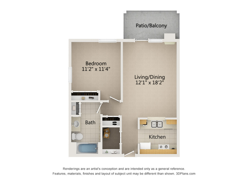 1 Dormitorio, 1 Baño, 639 pies²Galería del Modelo