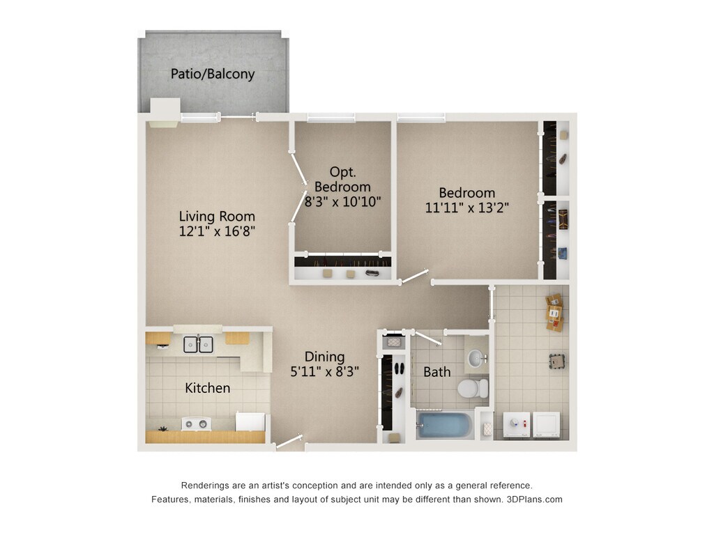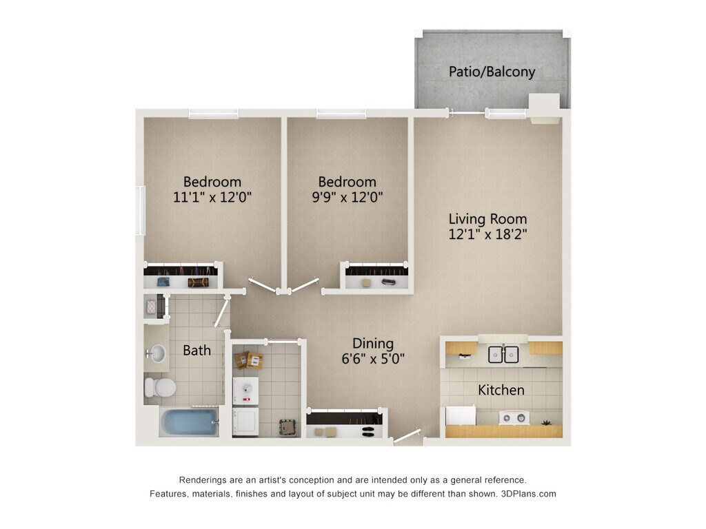 2 Dormitorios, 1 Baño, 905 pies²Disponible AhoraGalería del Modelo