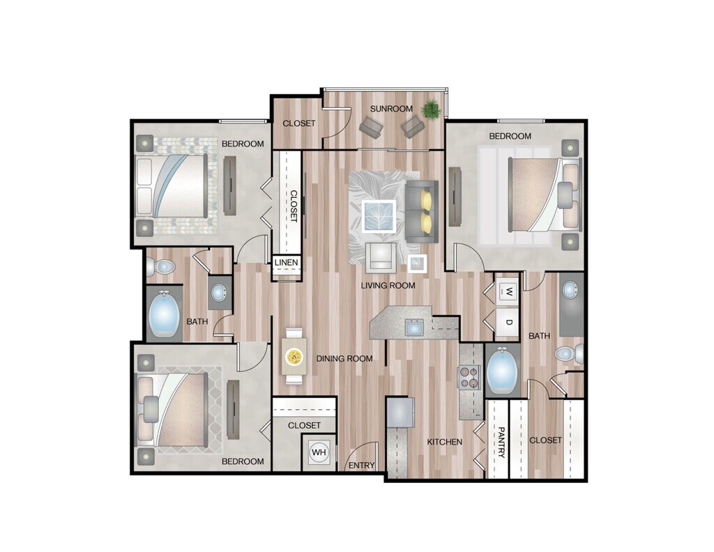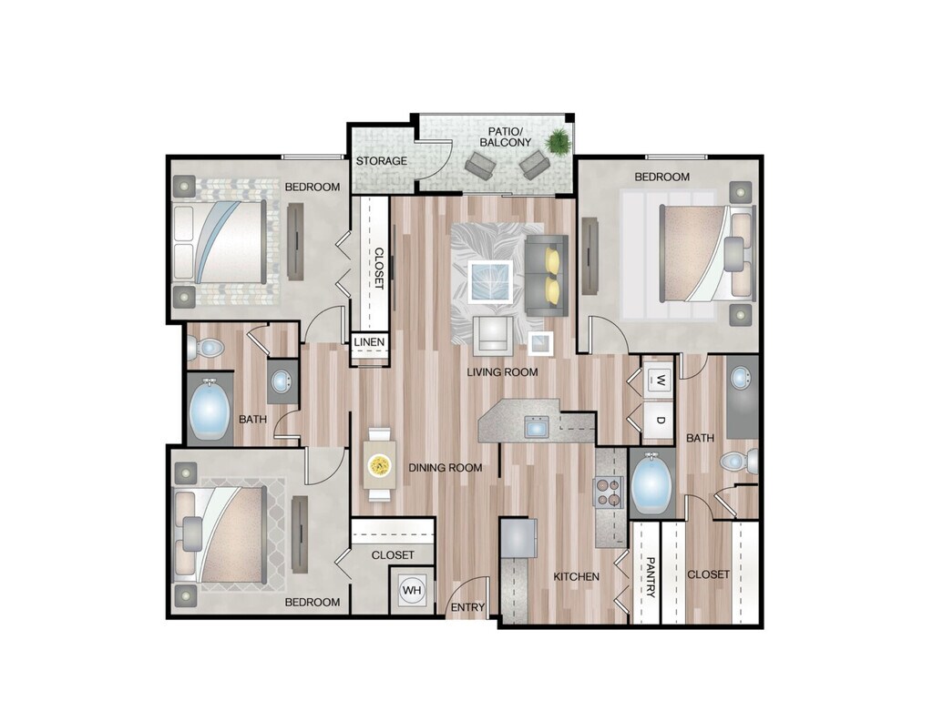 Modelo de apartamento: A3Desde $1,0601 Dormitorio, 1 Baño, 791 sq ftDisponible Ahora![]()