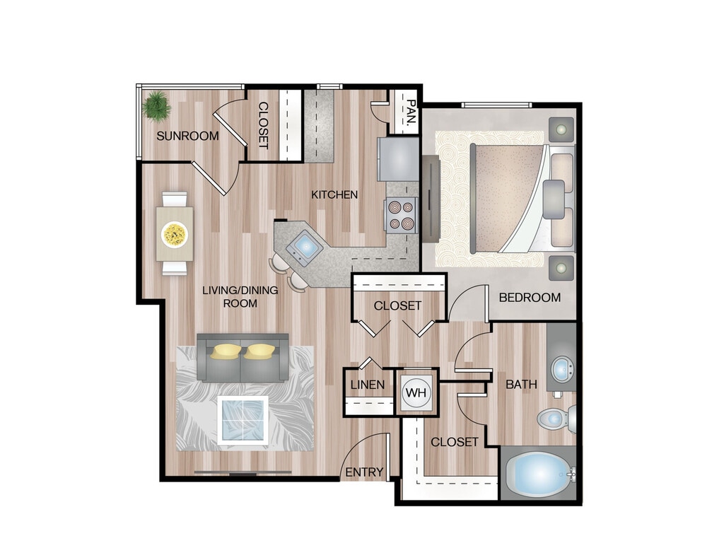 1 Dormitorio, 1 Baño, 881 pies²Disponible AhoraEl más grandeEsta opción tiene las unidades más grandes para este modeloGalería del Modelo