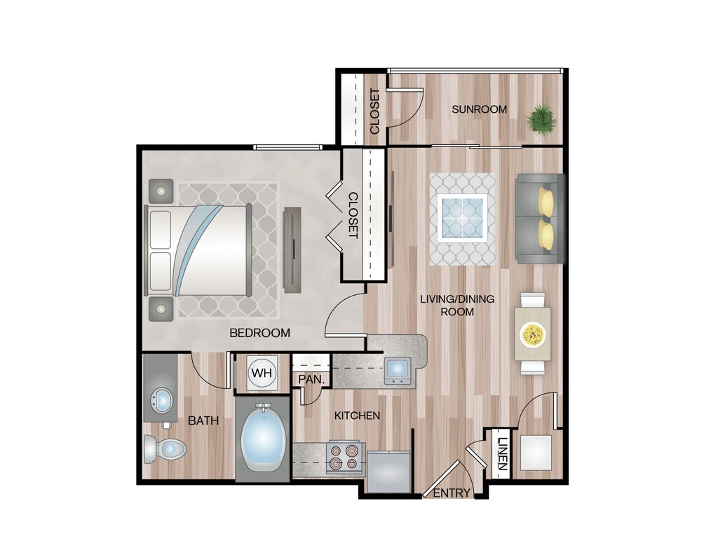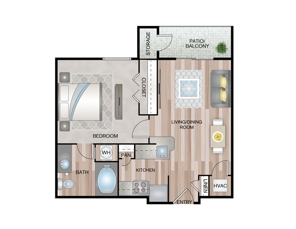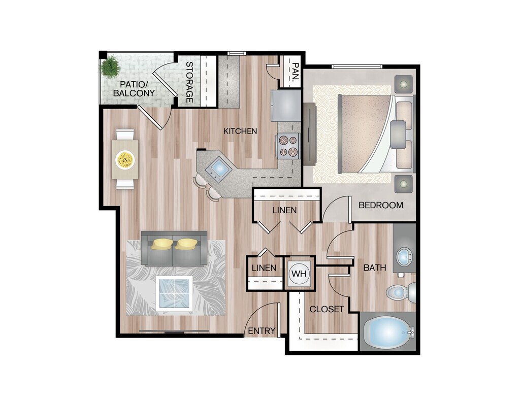 Modelo de apartamento: A2Desde $1,0401 Dormitorio, 1 Baño, 755 sq ftDisponible Ahora![]()