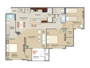 Modelo de apartamento: AZALEADesde $1,4712 Dormitorios, 2 Baños, 1076 sq ftDisponible Ahora![]()