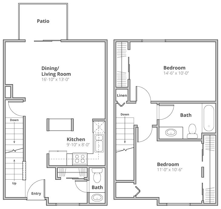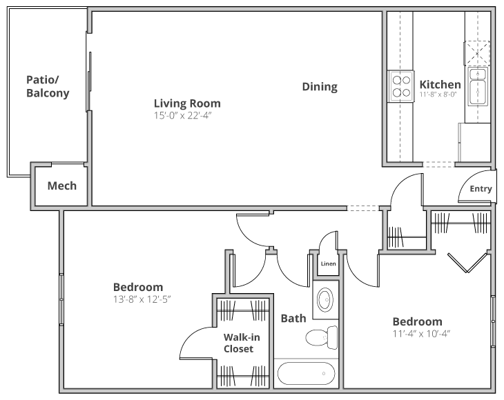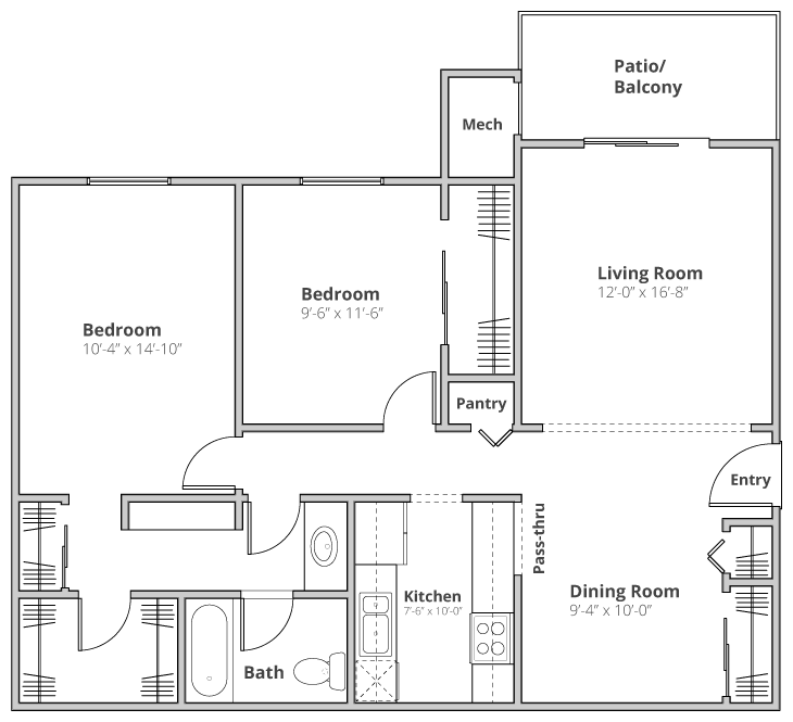 2 Dormitorios, 1 Baño, 970 pies²Disponible AhoraGalería del Modelo