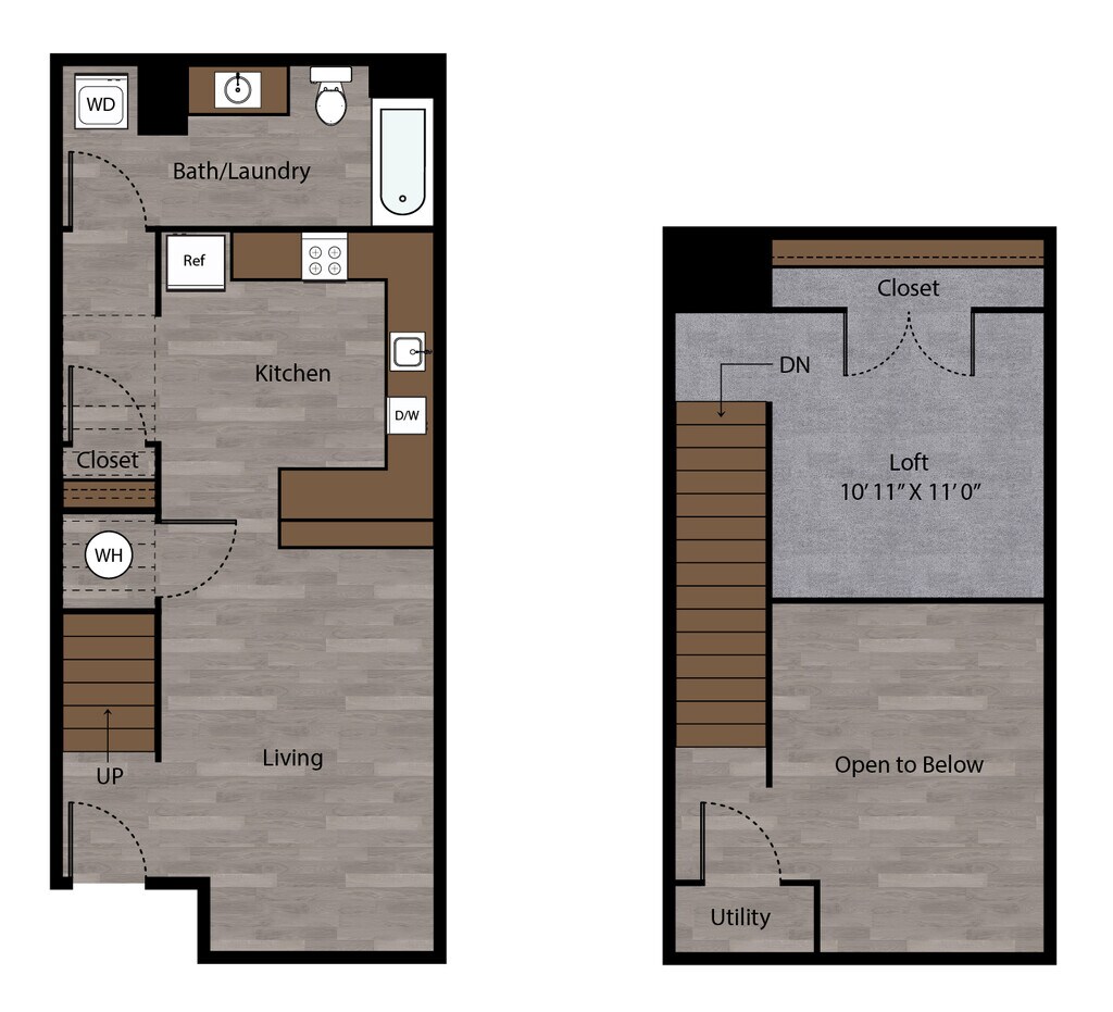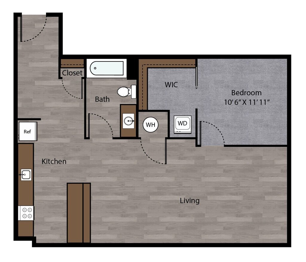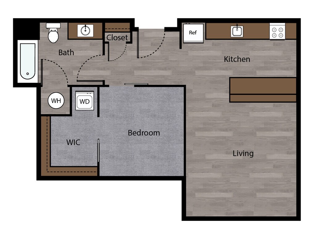 Estudio, 1 Baño, 565 pies²Disponible AhoraGalería del Modelo