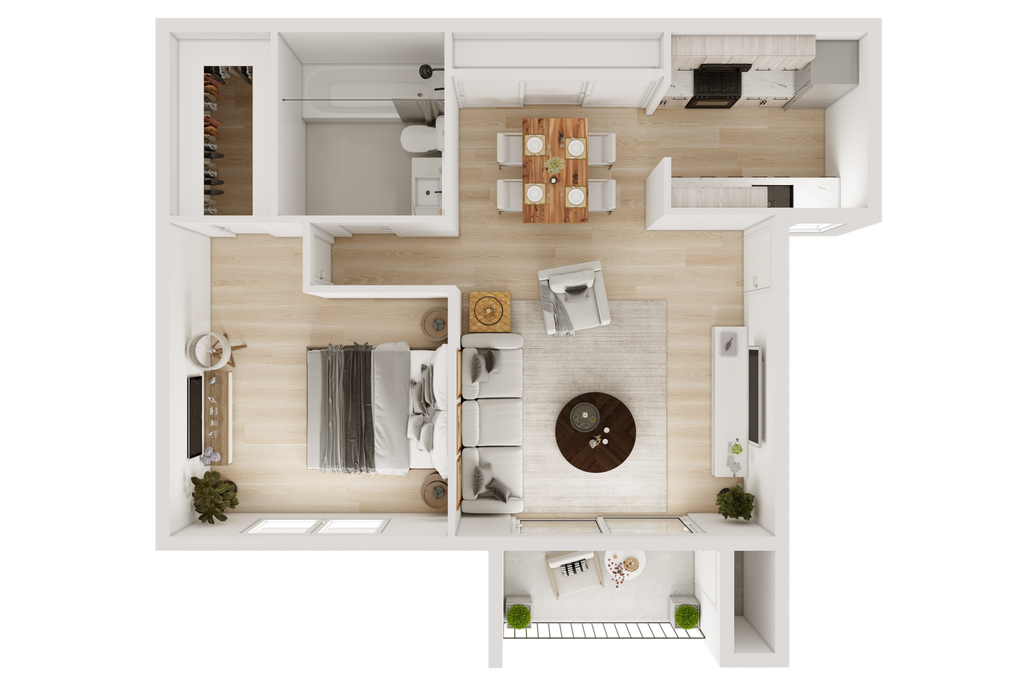 1 Dormitorio, 1 Baño, 615 pies²Disponible AhoraGalería del Modelo