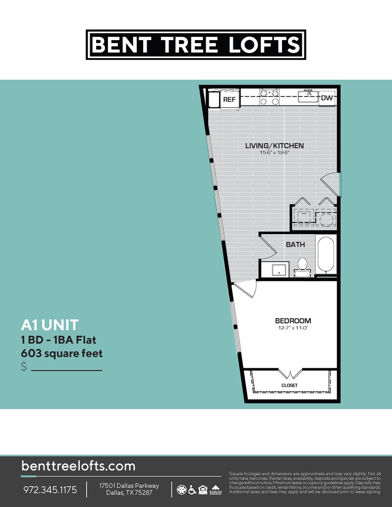 Bent Tree Lofts ofrece apartamentos de Estudio a 2 Dormitorios desde $1,572 con 472–1,260 pies cuadrados. Aquí está el precio actual y la disponibilidad: