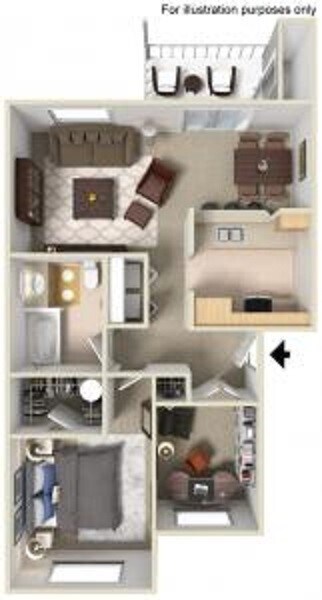 Modelo de apartamento: 2 Bed 1 BathDesde $1,3302 Dormitorios, 1 Baño, 829 sq ftDisponible Ahora![]()