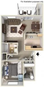 1 Dormitorio, 1 Baño, 727 pies²Disponible AhoraGalería del Modelo