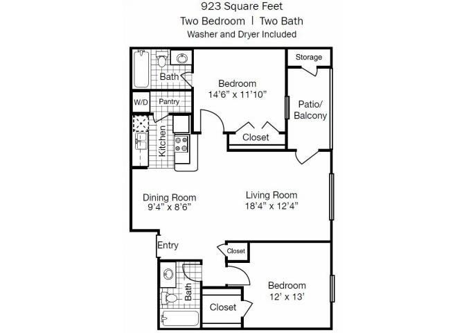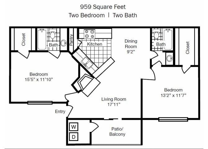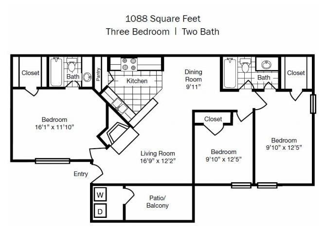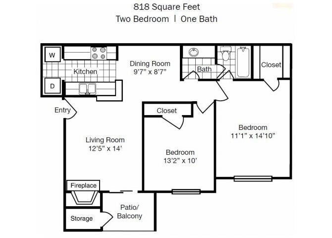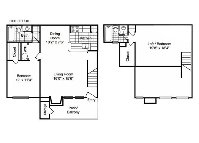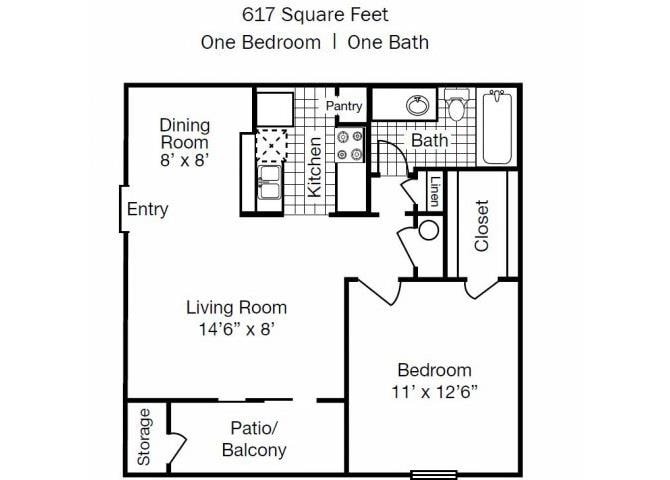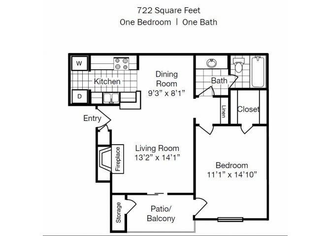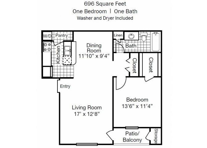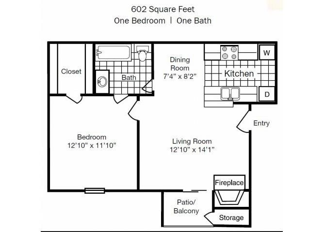 Modelo de apartamento: A2 - AndoverDesde $9821 Dormitorio, 1 Baño, 617 sq ftDisponible Ahora![]()