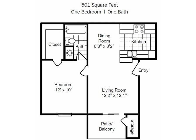 1 Dormitorio, 1 Baño, 501 pies²Disponible AhoraGalería del Modelo