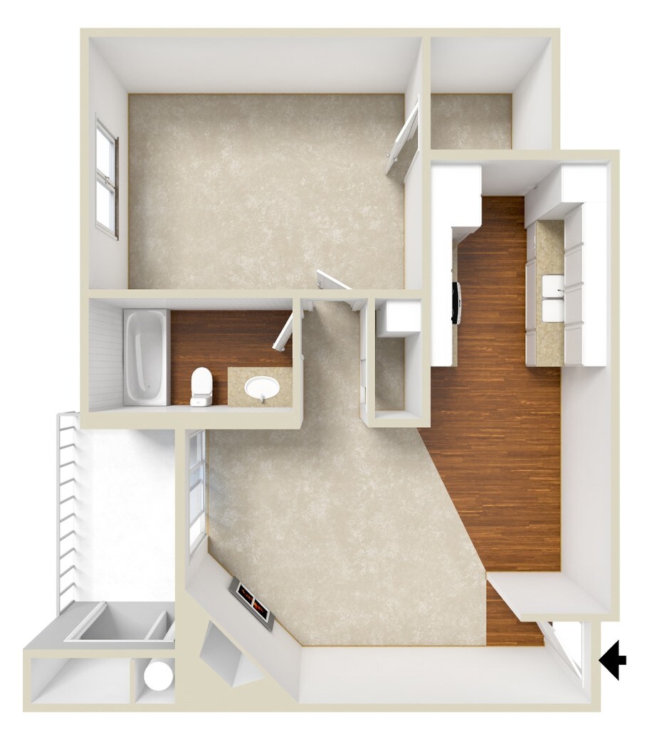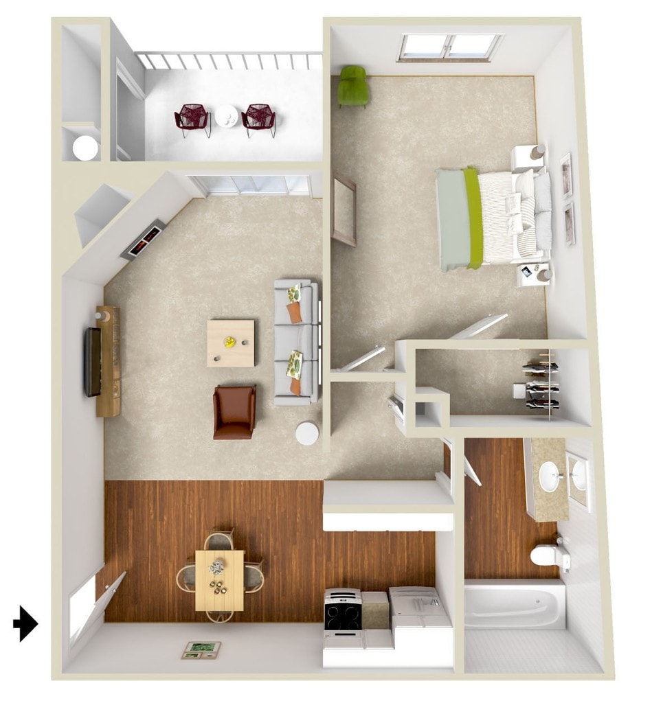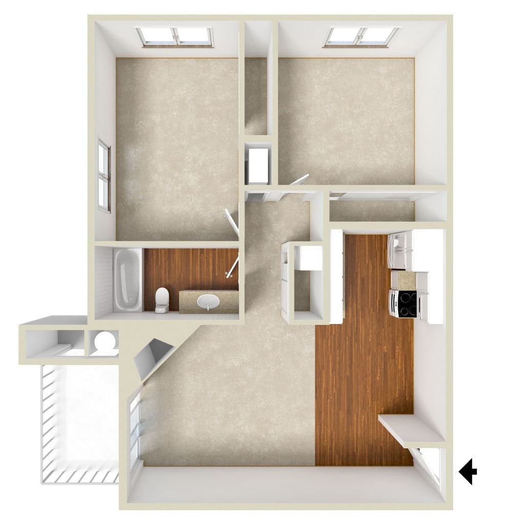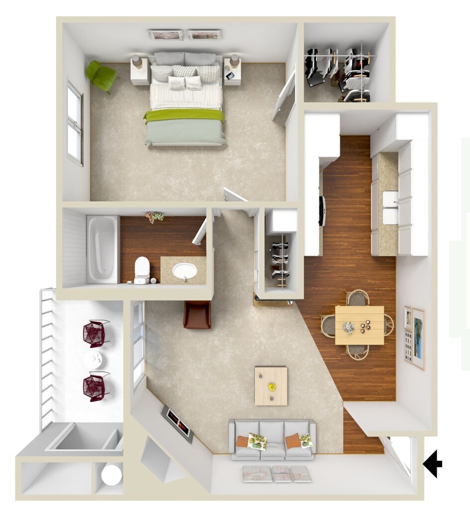 Modelo de apartamento: SunsetLlame para Precios1 Dormitorio, 1 Baño, 722 sq ftNo Disponible![]()