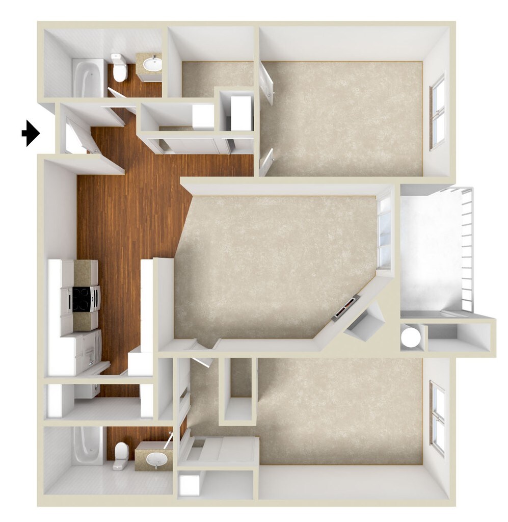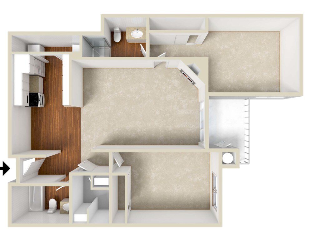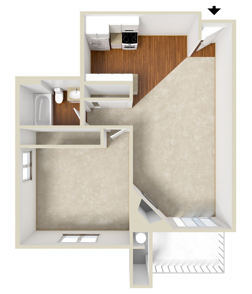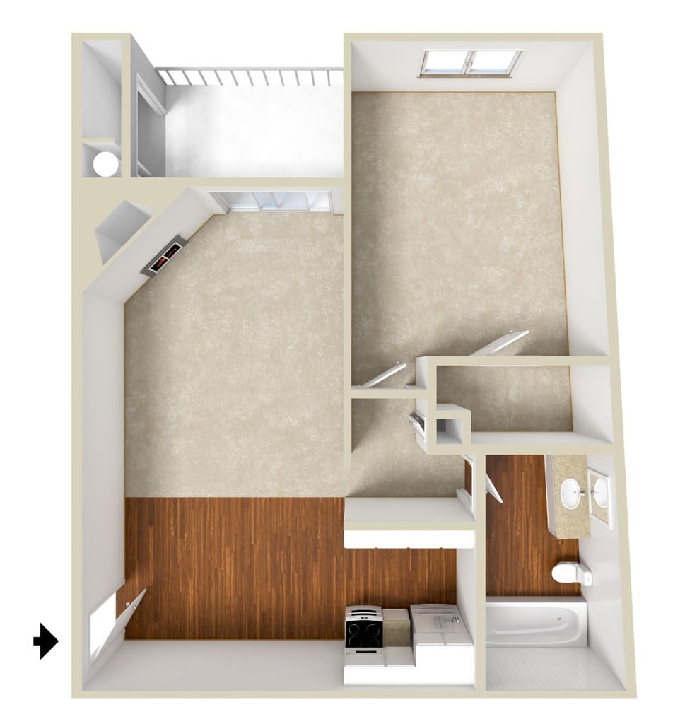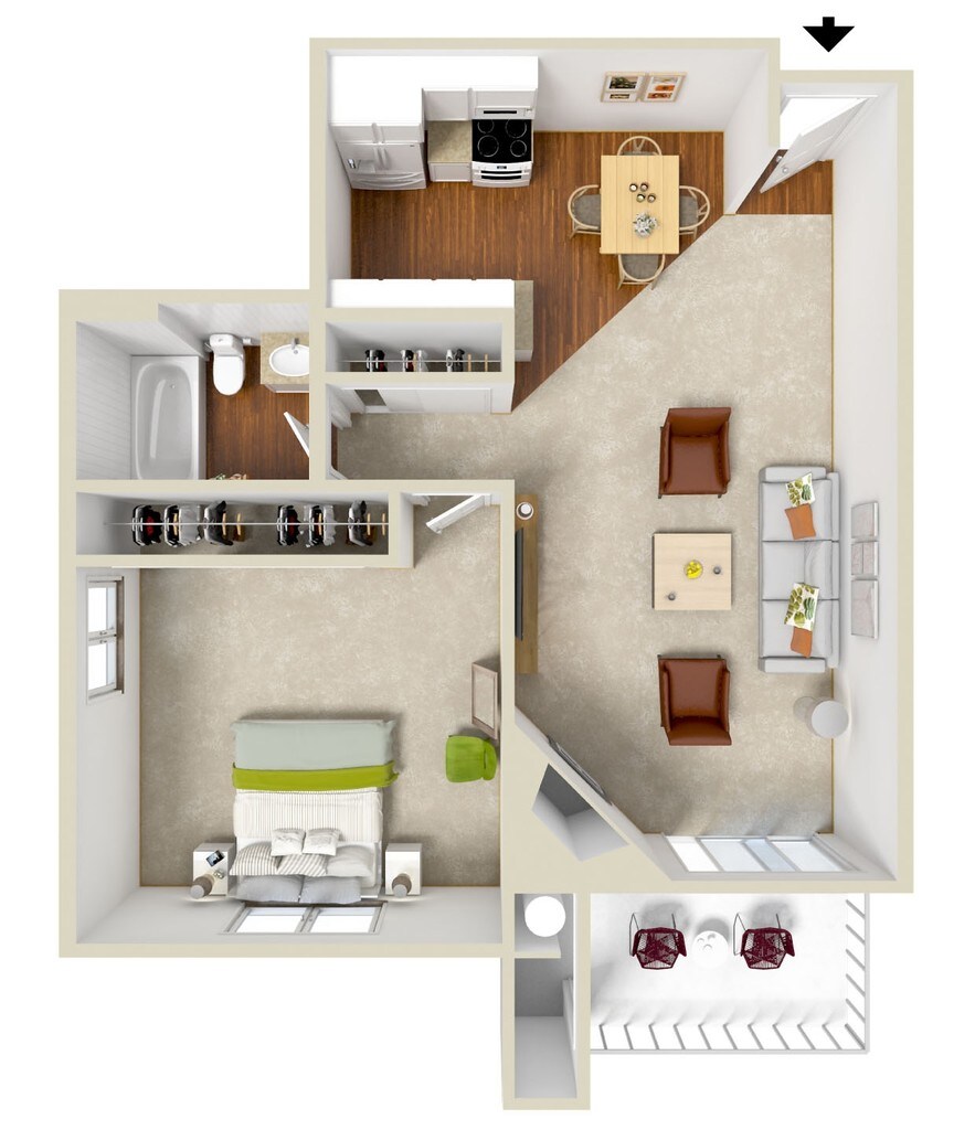 Modelo de apartamento: SunsetLlame para Precios1 Dormitorio, 1 Baño, 722 sq ftNo Disponible![]()