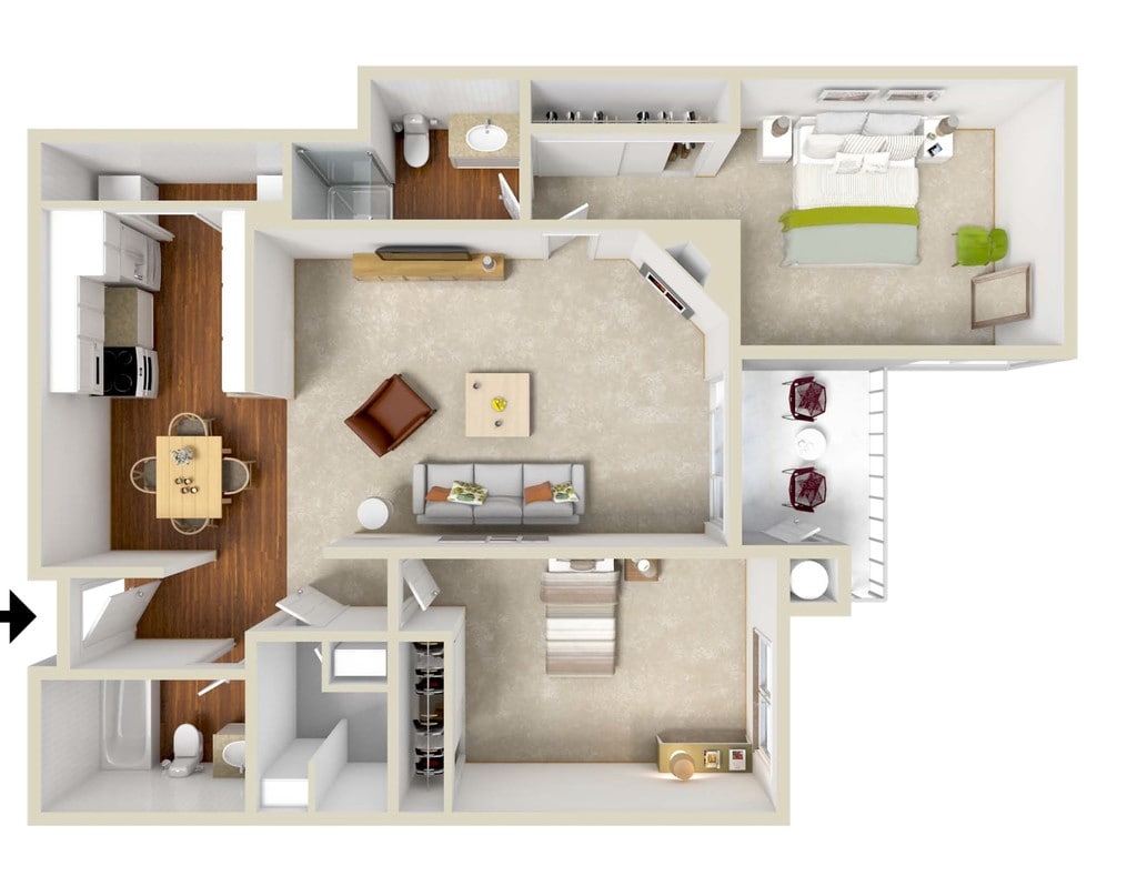 1 Dormitorio, 1 Baño, 722 pies²El más grandeEsta opción tiene las unidades más grandes para este modeloGalería del Modelo