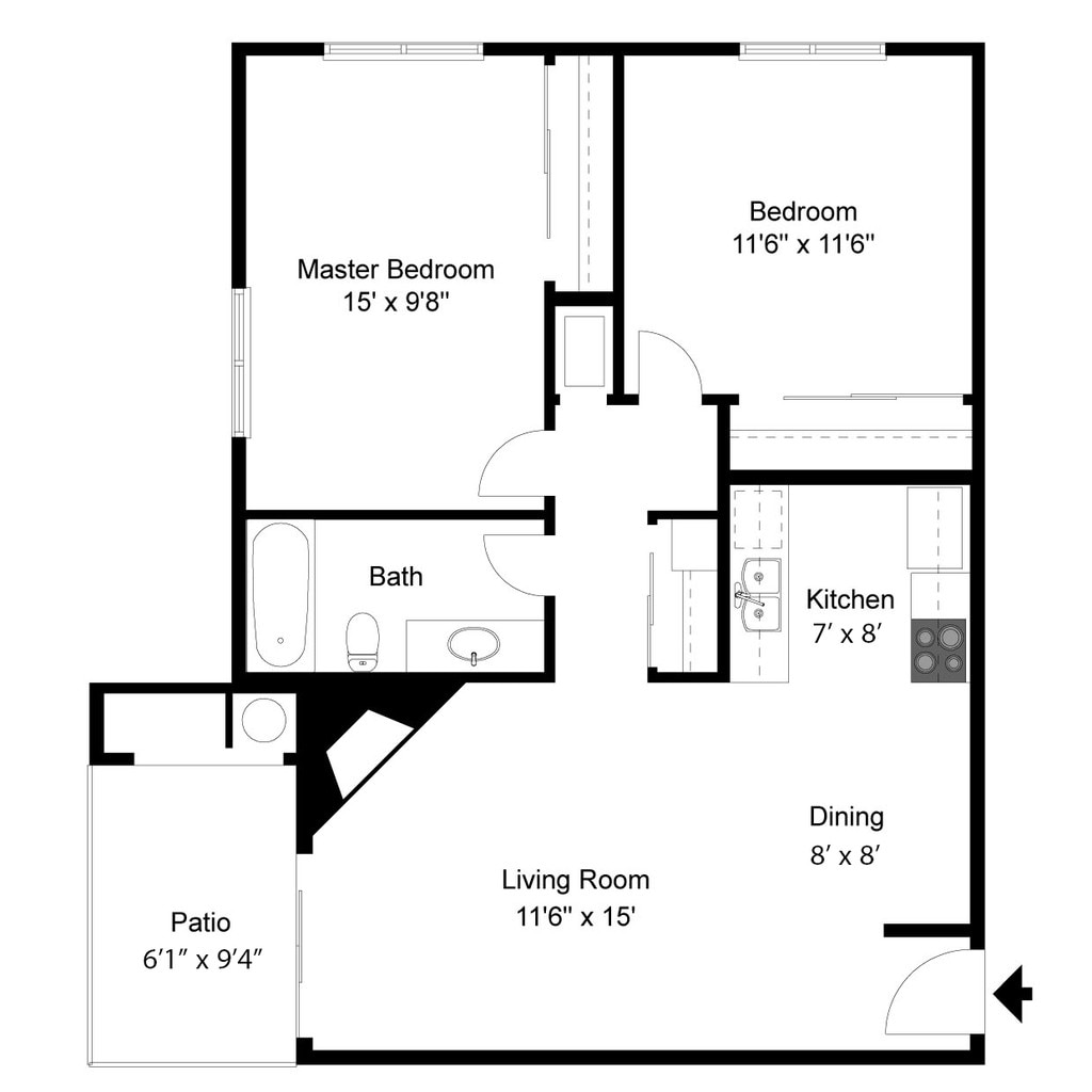 Modelo de apartamento: WintonLlame para Precios1 Dormitorio, 1 Baño, 618 sq ftNo Disponible![]()