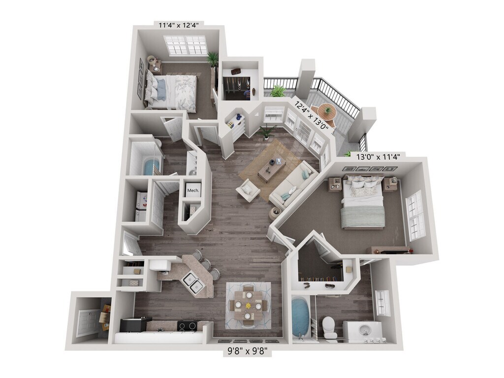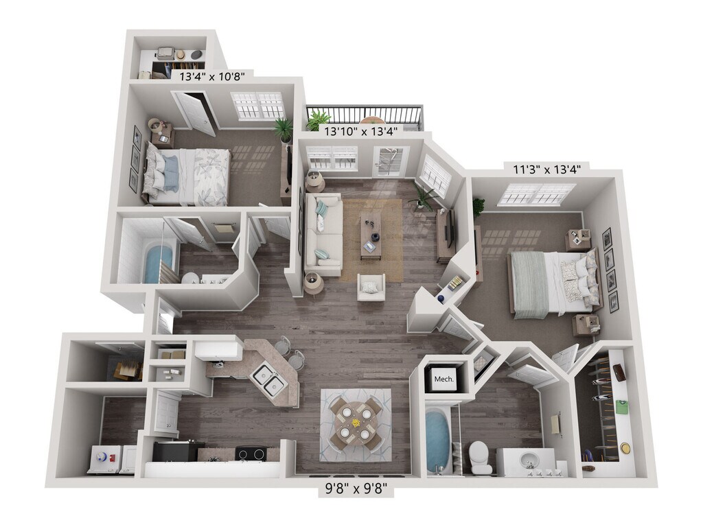 1 Dormitorio, 1 Baño, 769 pies²Precio Mensual TotalDisponible AhoraPrecio Mensual Total