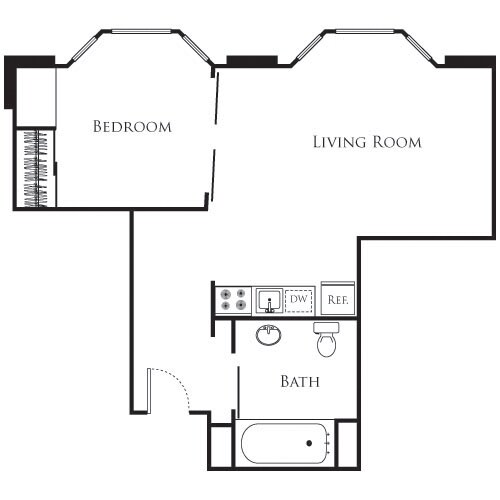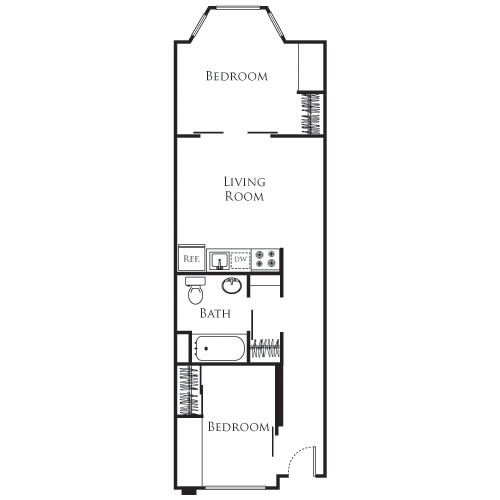 Modelo de apartamento: A21 Dormitorio, 1 Baño, 576 sq ftNo Disponible![]()