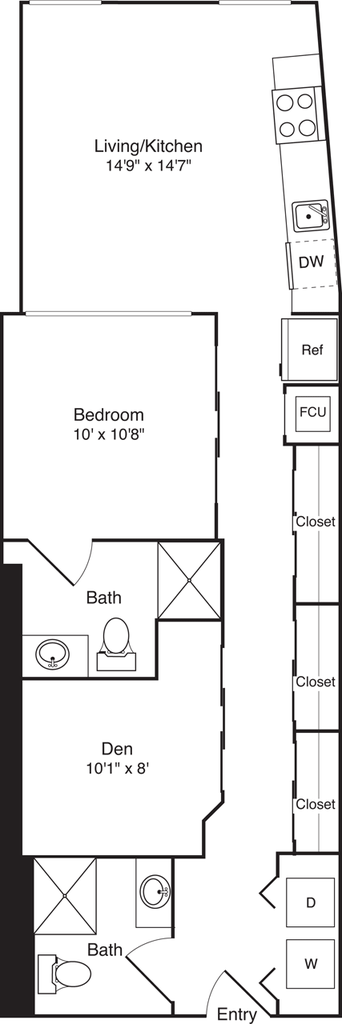 Modelo de apartamento: C13 Dormitorios, 1 Baño, 854 sq ftNo Disponible![]()