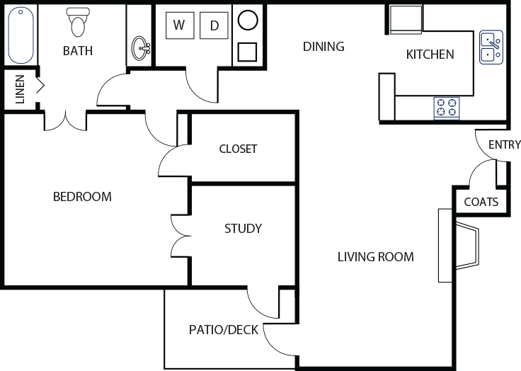 1 Dormitorio, 1 Baño, 965 pies²Disponible AhoraGalería del Modelo