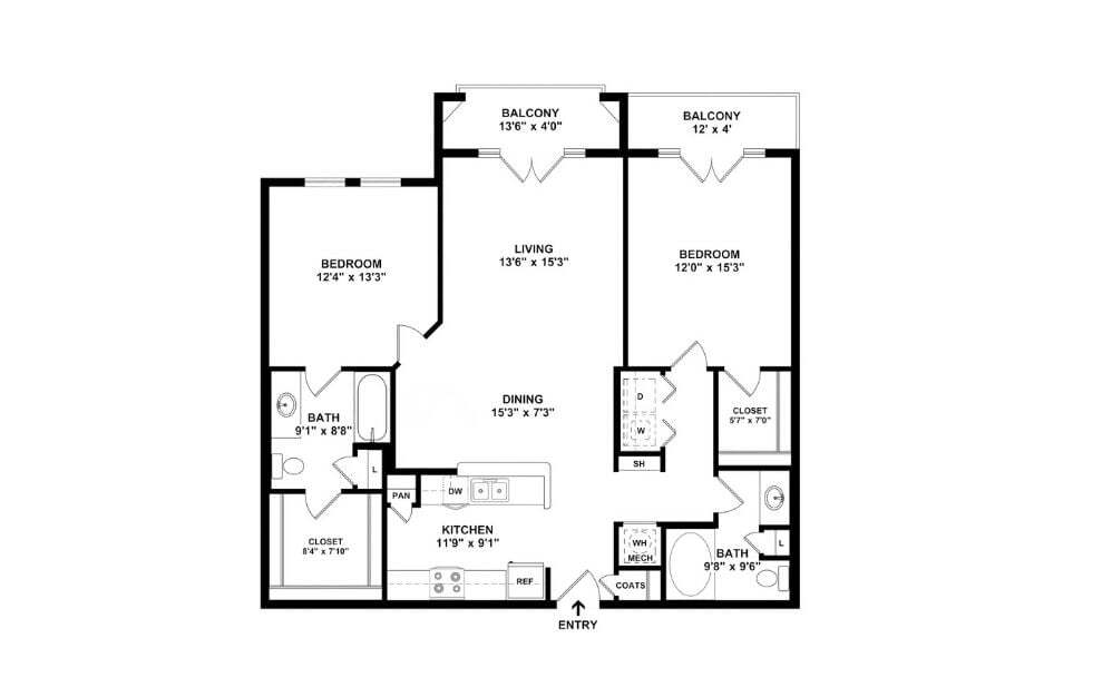 Modelo de apartamento: B22$1,9802 Dormitorios, 2 Baños, 1199 sq ftDisponible Ahora![]()