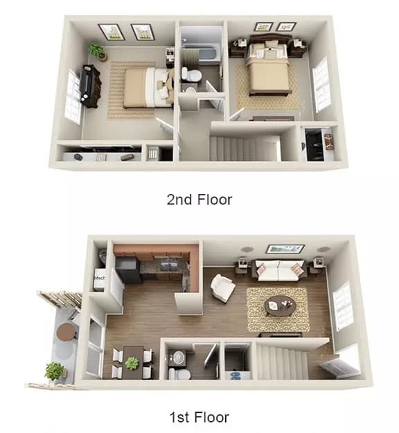 Modelo de apartamento: 2 BR Townhome (large)Desde $1,3952 Dormitorios, 1.5 Baños, 1158 sq ftDisponible Ahora![]()