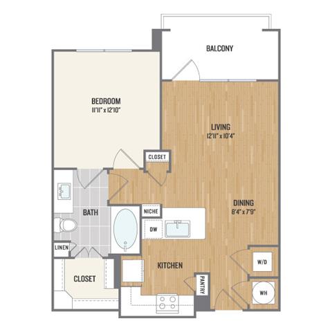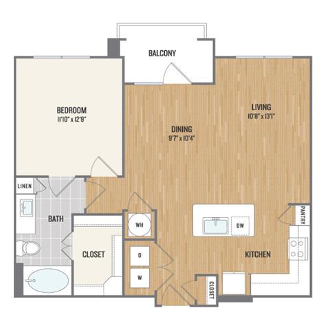1 Dormitorio, 1 Baño, 712 pies²Disponible AhoraGalería del Modelo