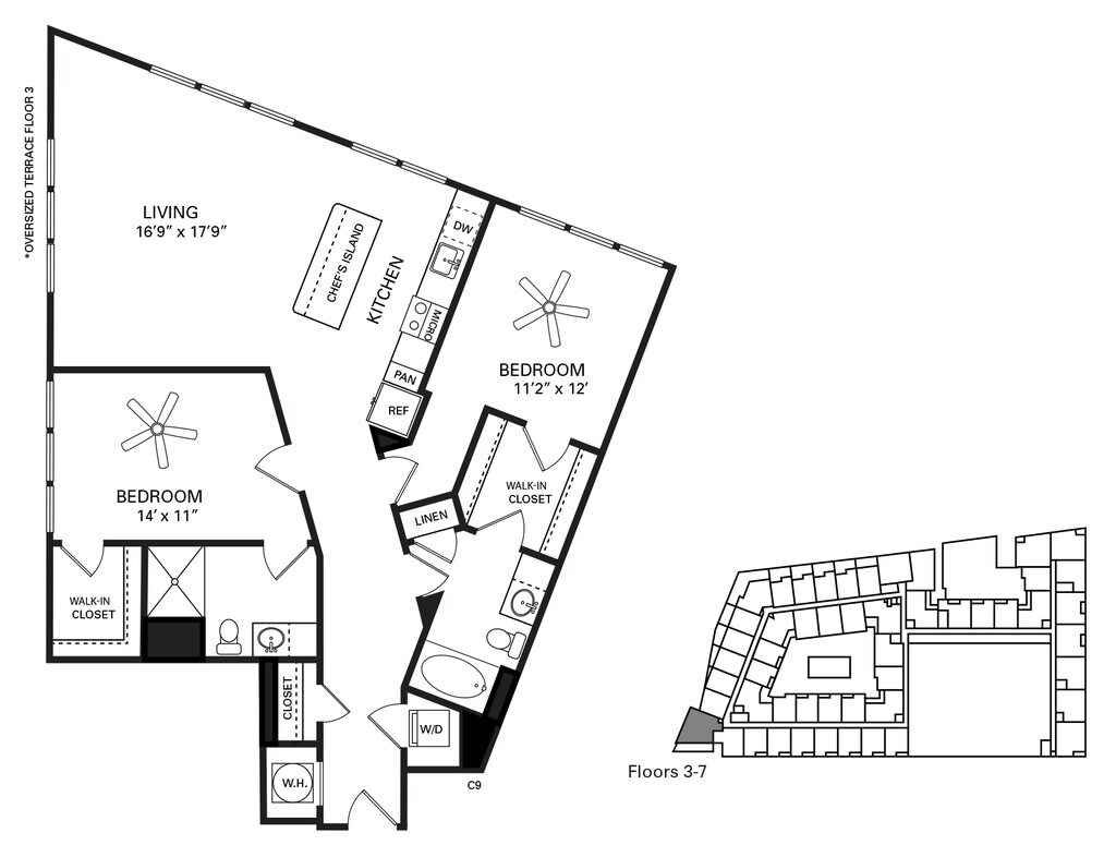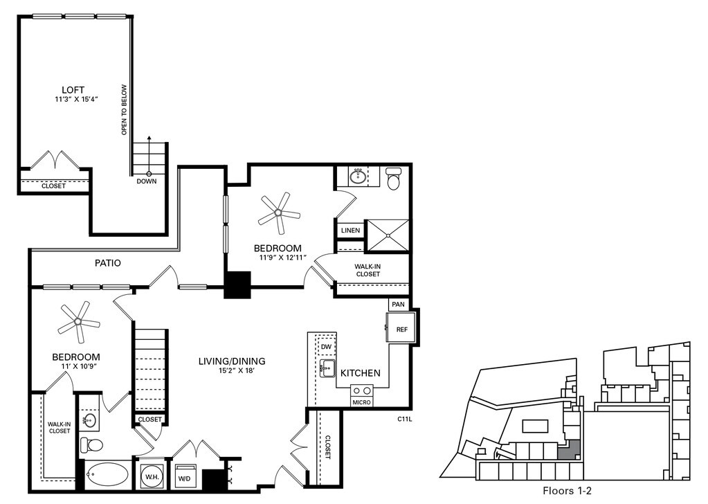 1 Dormitorio, 1 Baño, 1033 pies²Disponible AhoraEl más grandeEsta opción tiene las unidades más grandes para este modeloGalería del Modelo