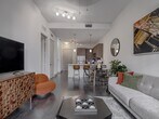 Elegante casa de estilo loft en el corazón del distrito financiero/centro de la ciudad de vecindario. Cocina abierta/sala de estar/comedor de diseño con espacio para un escritorio ofrece amplias ventanas que admiten la entrada de luz natural. El apartamento ofrece un amplio espacio de guardarropas, así como un adicional de espacio de almacenaje privado. Amplias habitaciones con abundante espacio de armarios y baño con bañera y ducha. Aire acondicionado central, pisos de madera noble, electrodomésticos de acero inoxidable y lavadora/secadora completan esta oferta. Este apartamento es perfecta para el entretenimiento, y está ubicado cerca de los medios de transporte público administrado de forma profesional en un edificio con elevador.