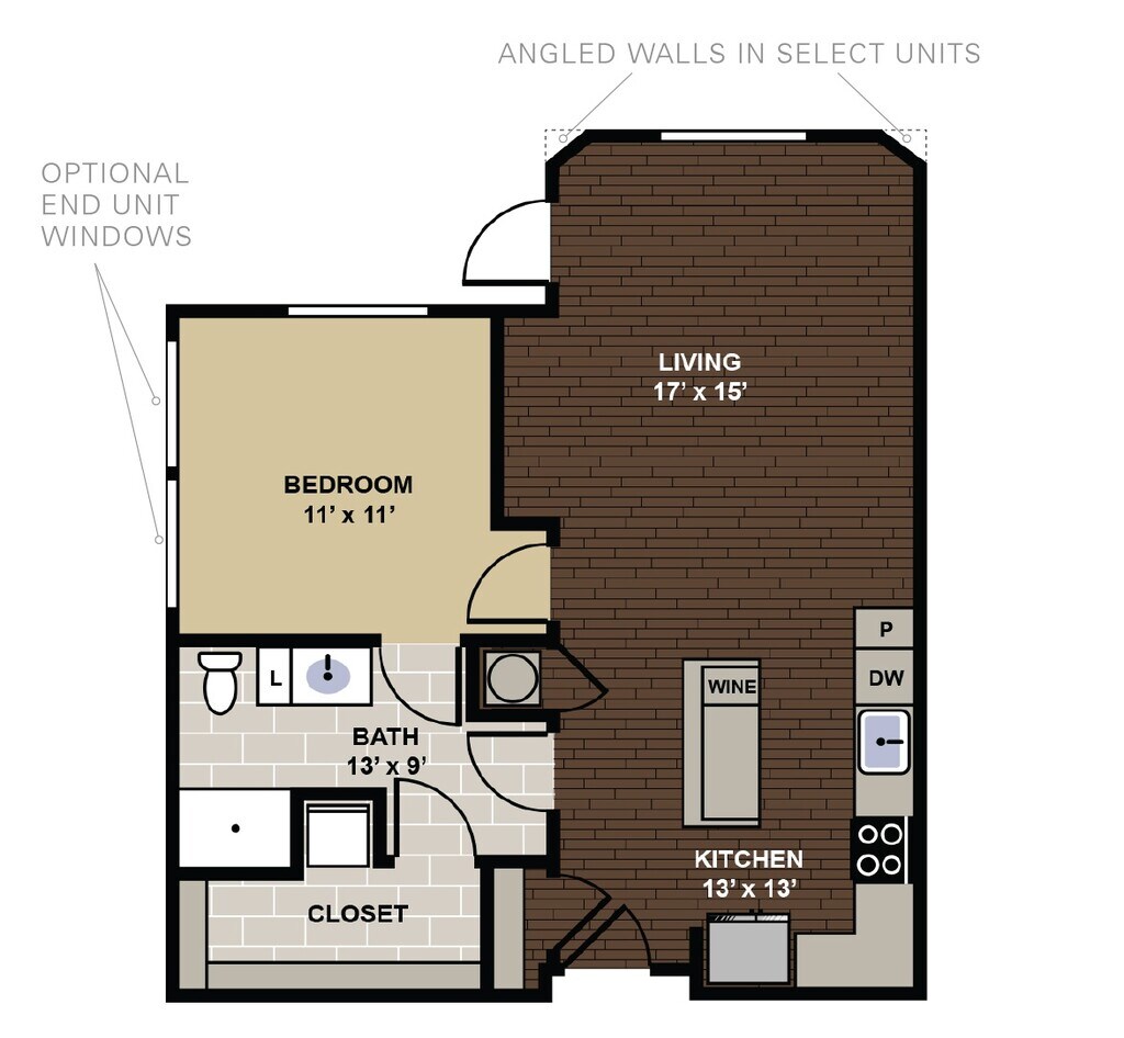 Modelo de apartamento: WorthingtonLlame para PreciosEstudio, 1 Baño, 555 sq ftNo Disponible![]()
