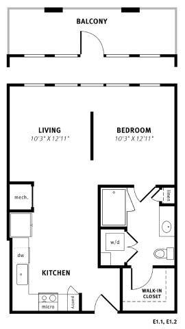 Modelo de apartamento: S1Llame para PreciosEstudio, 1 Baño, 665 sq ftNo DisponibleS1 - Plano 1 S1 - Plano 2 1 Dormitorio